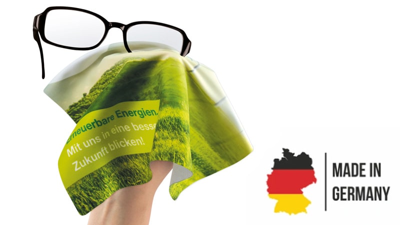 Entsorgen Sie den Pergaminbeutel bedenkenlos über das Altpapier und setzen Sie auf umweltbewusstes Marketing mit unserem hochwertigen Microfasertuch aus rPET!