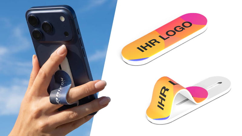 Dieses praktische Smartphone-Accessoire ist funktionell und langlebig. Ihre Kundinnen und Kunden nutzen es täglich im Alltag. So stärkt der Fingerhalter Ihre Markenpräsenz und trägt Ihre Werbebotschaft effektiv weiter.