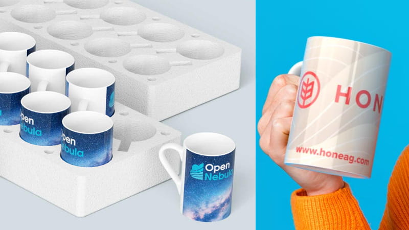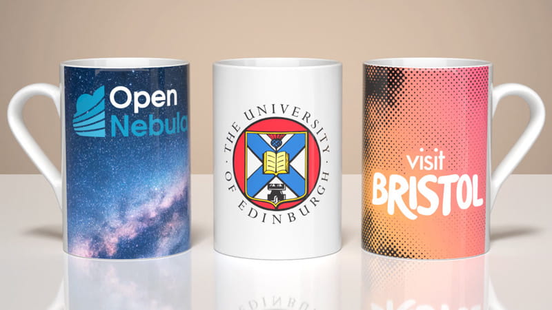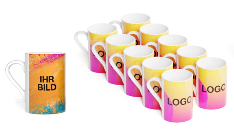 Dank modernster Drucktechnologie wird Ihr Logo, Firmenname oder individuelles Wunschmotiv gestochen scharf und farbintensiv auf die brillante, weiße Oberfläche übertragen.