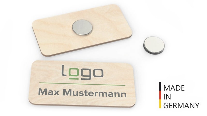Der moderne Look der naturbelassenen Holzoberfläche macht das EcoBadge zu einem echten Blickfang im Berufsalltag – ideal als Firmen-Namensschild , für Messe- und Eventpersonal , Hotellerie , Einzelhandel oder andere Dienstleistungsbranchen.
