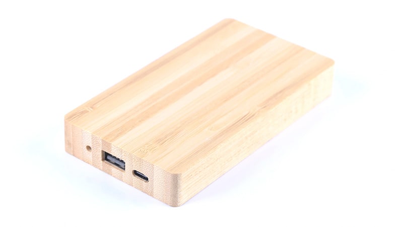 Das edle Echtholz-Gehäuse wird auf der Unterseite durch eine stabile Aluminiumplatte ergänzt. Dadurch ist die Powerbank aus Holz besonders robust und langlebig.