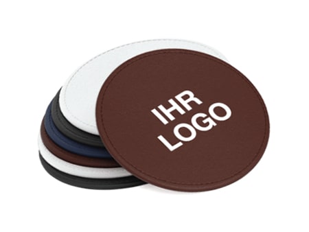 Steigern Sie die Sichtbarkeit Ihrer Marke mit den hochwertigen runden Untersetzern aus Kunstleder – dem eleganten Werbeartikel für stilbewusste Unternehmen.