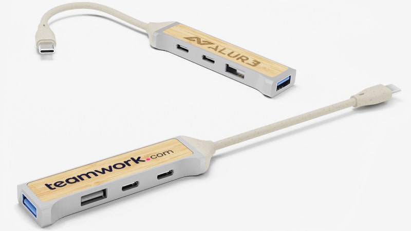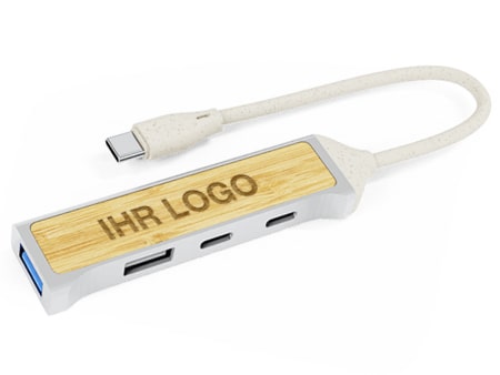 Der USB-HUB eignet sich hervorragend als durchdachtes Geschenk oder als Werbeartikel, um eine umweltfreundliche Markenbotschaft zu vermitteln. Er kombiniert Funktionalität mit Nachhaltigkeit und bietet eine zuverlässige Lösung für den Anschluss und das Aufladen verschiedener Geräte.
