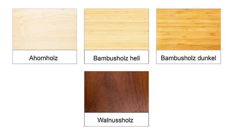 Ahorn, Walnuss, Bambus dunkel und hell